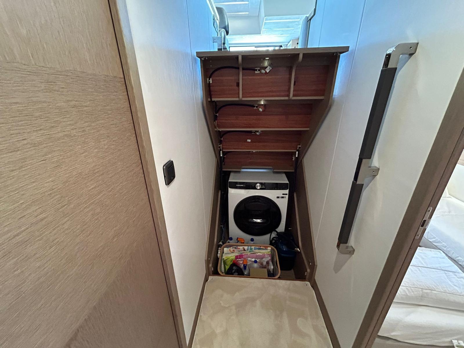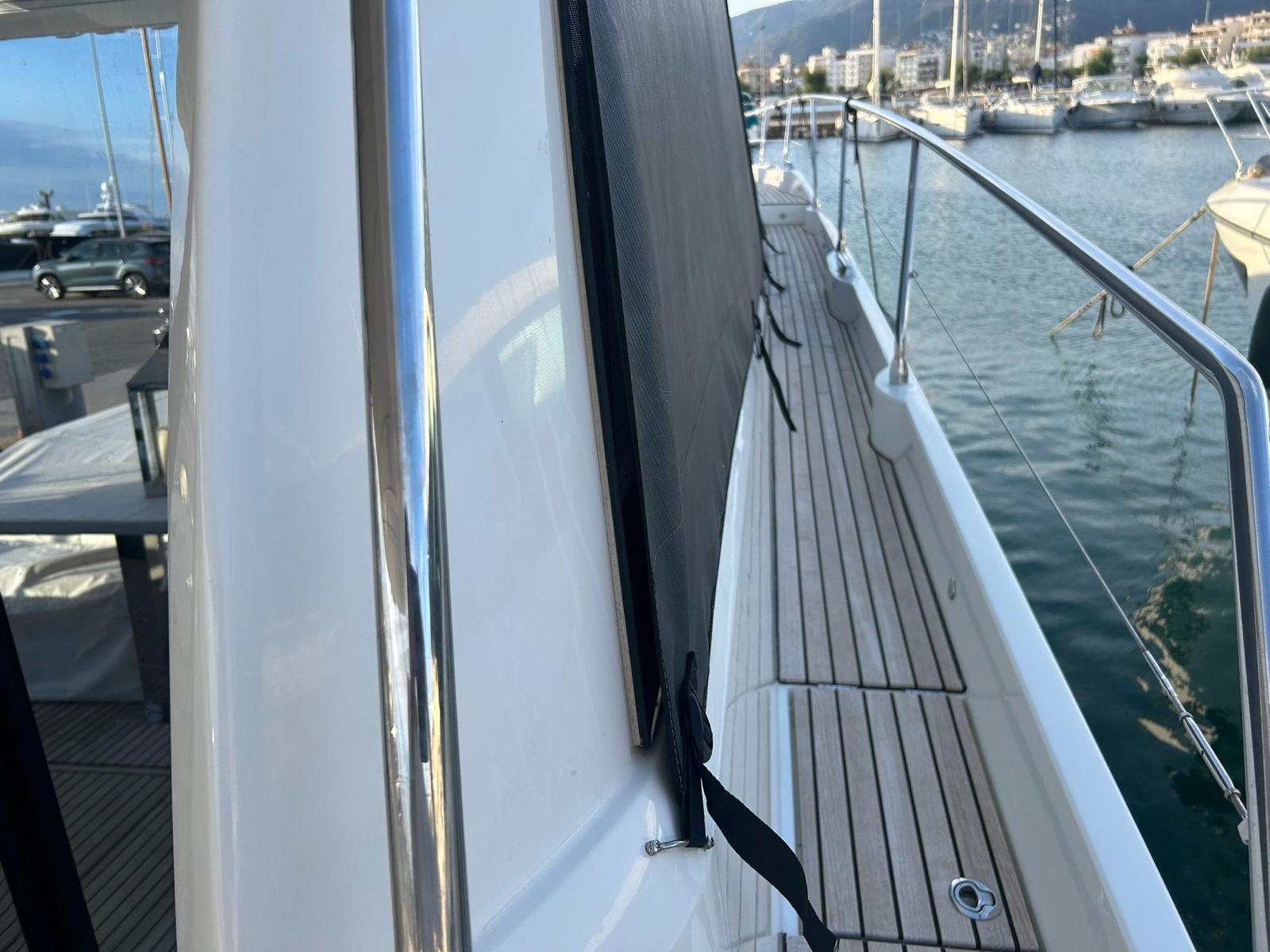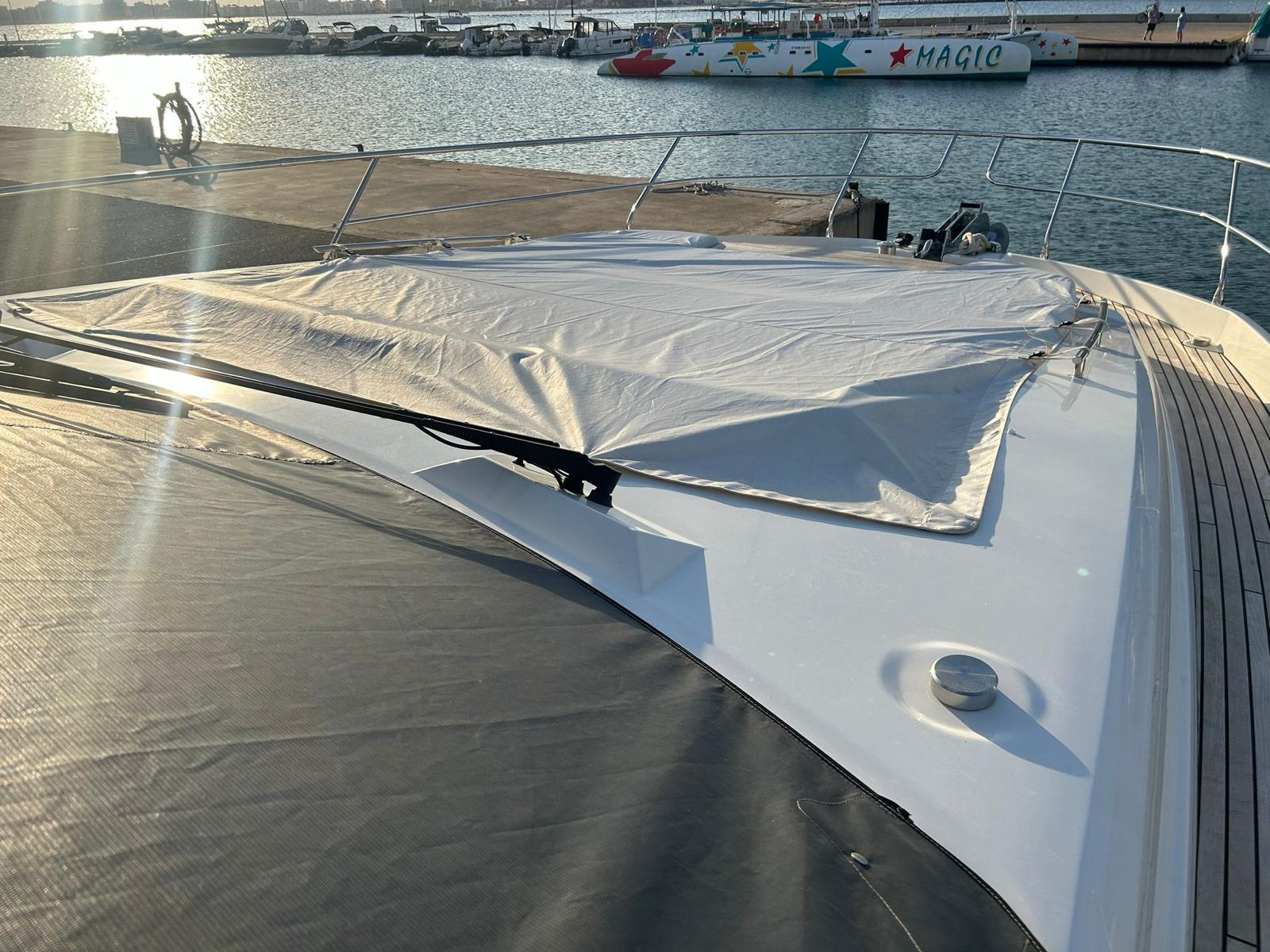 Hélice de proa 240kgf de doble hélice, generador de 11kw con escape submarino, mesa de bañera en teca con alas plegables, juego de funda de protección para la cubierta principal: mesa de bañera, ventana corredera, microondas miele en lugar de un microondas estándar, cabrestante eléctrico para amarra de babor, sistema de bomba de lavado de eléctrica en pozo de anclas y bañera, toma de agua de muelle.