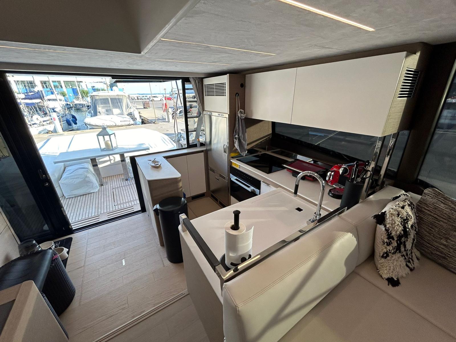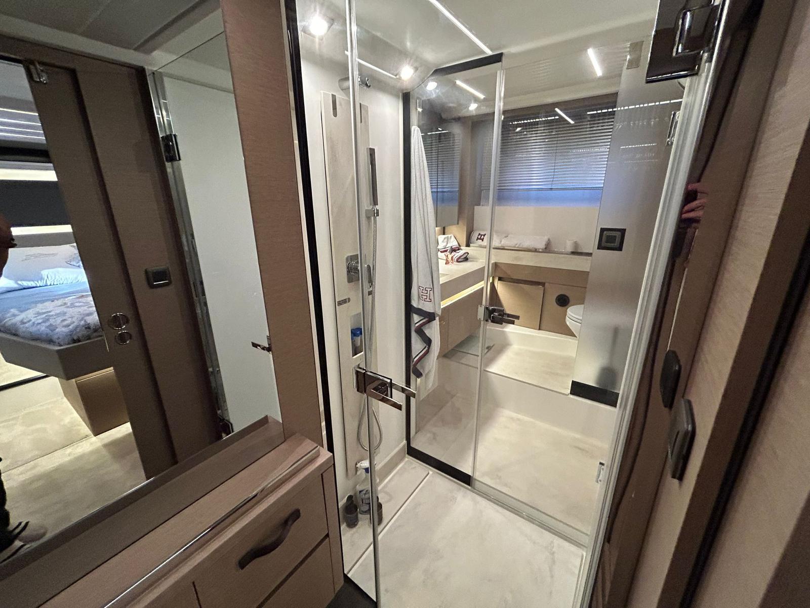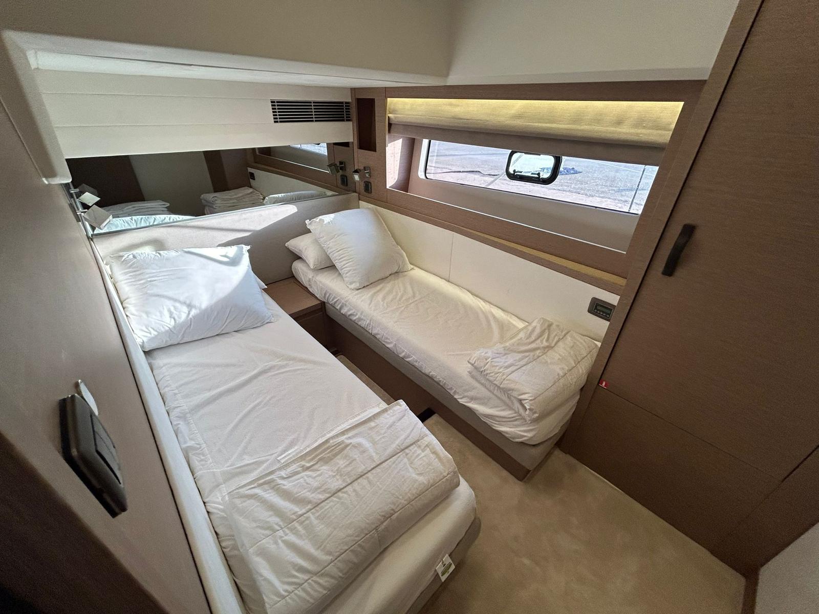 Hélice de proa 240kgf de doble hélice, generador de 11kw con escape submarino, mesa de bañera en teca con alas plegables, juego de funda de protección para la cubierta principal: mesa de bañera, ventana corredera, microondas miele en lugar de un microondas estándar, cabrestante eléctrico para amarra de babor, sistema de bomba de lavado de eléctrica en pozo de anclas y bañera, toma de agua de muelle.